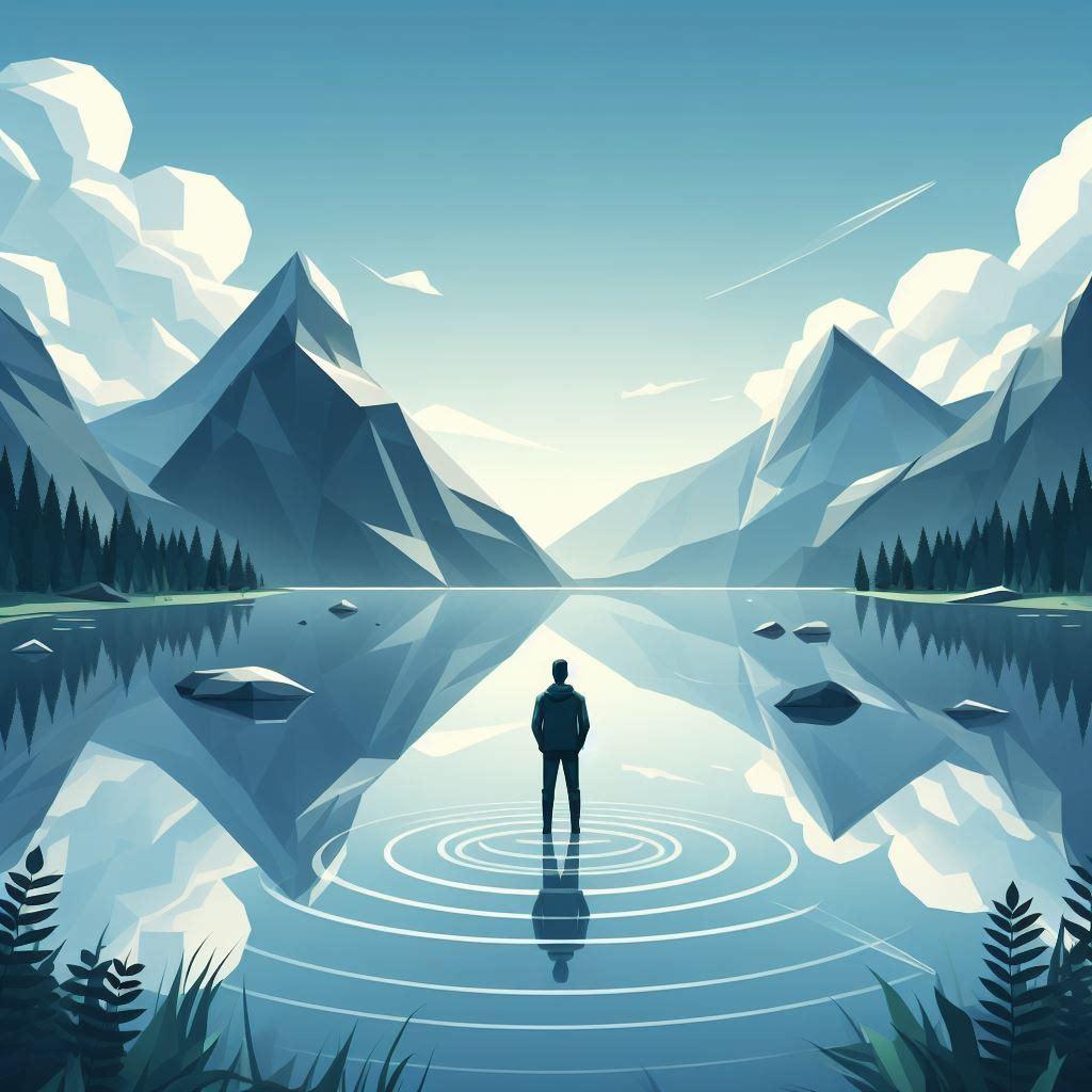 Imagine a serene lake surrounded by mountains. Happiness is not in the mountains, nor in the reflection of the clouds on the water. It resides in the stillness of the lake, undisturbed by the external ripples. Similarly, our minds can be that calm lake, finding serenity within, irrespective of the storms that may rage around us.