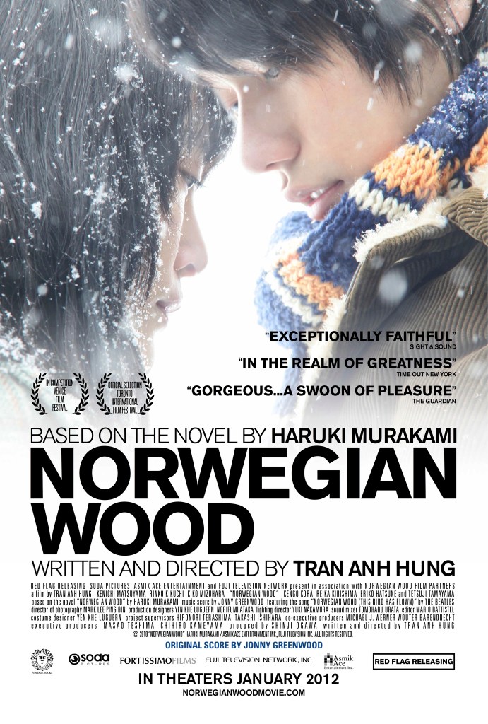 This blog post contains discussions and analyses of both Haruki Murakami’s novel “Norwegian Wood” and its 2010 film adaptation by Trần Anh Hùng. If you haven’t read the book or watched the movie, be aware that significant plot points and character developments will be revealed.