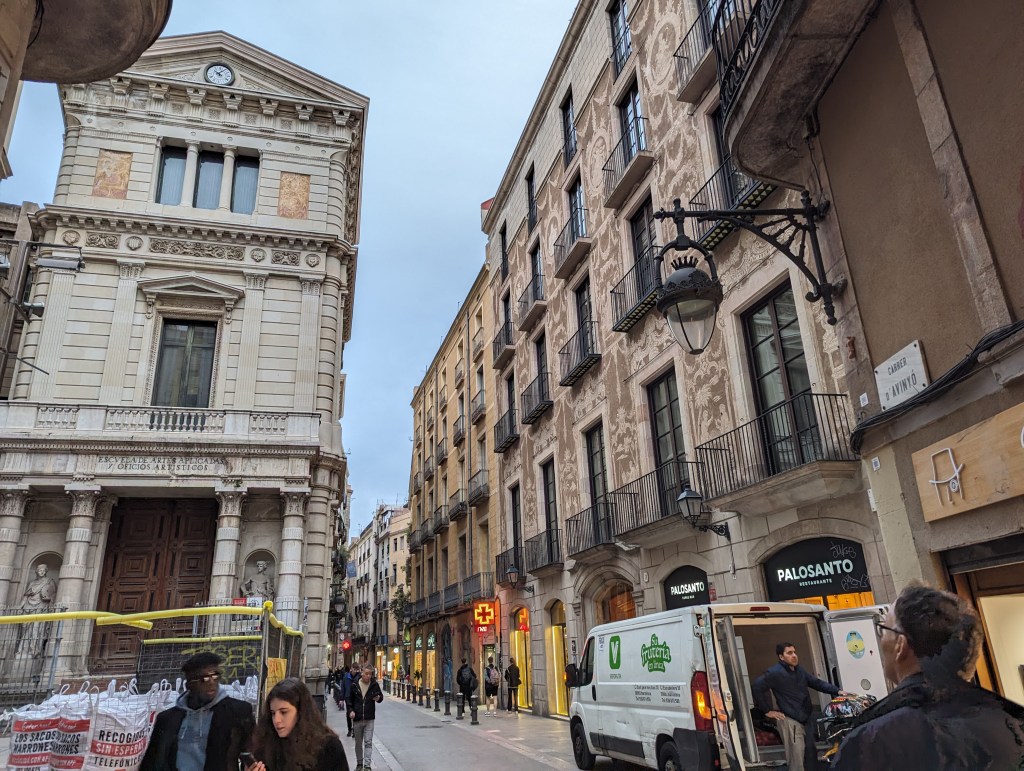 Picasso’s family moved from Málaga to Barcelona when he was 14 years old because his father secured a position as a professor at the Escola de Belles Arts de Barcelona, La Llotja. Picasso also enrolled as a student at this school, further immersing himself in the city’s artistic environment. During a recent trip to Barcelona, I walked through the historic Gothic Quarter and visited Carrer d’Avinyó. This street is home to the Escuela de Artes Aplicadas y Oficios Artísticos, not far from the famous bar Els Quatre Gats, a favorite haunt of the young Picasso. Notably, Carrer d’Avinyó was known for its many brothels, which Picasso frequented, inspiring the name and subject matter of Les Demoiselles d’Avignon.